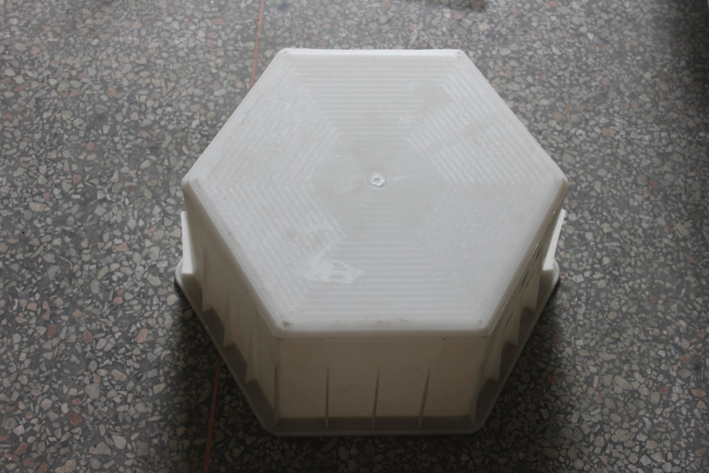 采用聚丙烯塑料原料經(jīng)注塑加工生產(chǎn)制造完成的實(shí)心六角護(hù)坡磚模具,外表白色透析,內(nèi)在堅(jiān)韌耐用,是生產(chǎn)高質(zhì)量實(shí)心六角護(hù)坡磚難得的塑料模具制品。實(shí)心六角護(hù)坡磚模具整體結(jié)構(gòu)簡(jiǎn)單,呈一個(gè)塑料盒子樣子,上面開(kāi)口用于水泥澆筑,所以有不少地方也稱為實(shí)心六角護(hù)坡磚模盒。