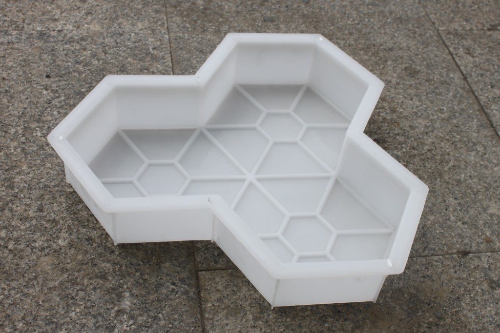 此款路面彩磚塑料模具主要使用了全新PP聚丙烯為原料,經(jīng)精良的注塑機械對原料熱熔之后注塑加工而成,主要設計款式以三葉型設計,是一款非常新穎獨特的彩磚塑模。一般來說使用此類塑模加工路面彩色磚塊的時候,純粹的澆筑灰色水泥是達不到彩色的效果,所以我們必須添加適當?shù)难趸伭蟻戆l(fā)揮這個彩磚塑模的真正功效。