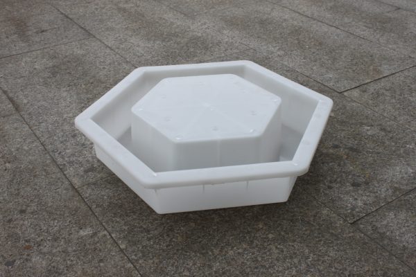此空心六角護(hù)坡磚模具六角邊長為20厘米,高度8厘米,實際所制水泥護(hù)坡磚寬度為5厘米,是一個應(yīng)用相對常規(guī)的六角護(hù)坡磚模具。最大的特點就是空心結(jié)構(gòu)的設(shè)計,對于一些生態(tài)建設(shè)要求較高的護(hù)坡項目特別使用,布置好整體鋪設(shè)規(guī)劃之后,可在空心六角護(hù)坡磚內(nèi)播撒植物種子或直接種植小型灌木類植物,生態(tài)綠化效果突出,對于周圍空氣質(zhì)量的提升相當(dāng)明顯。