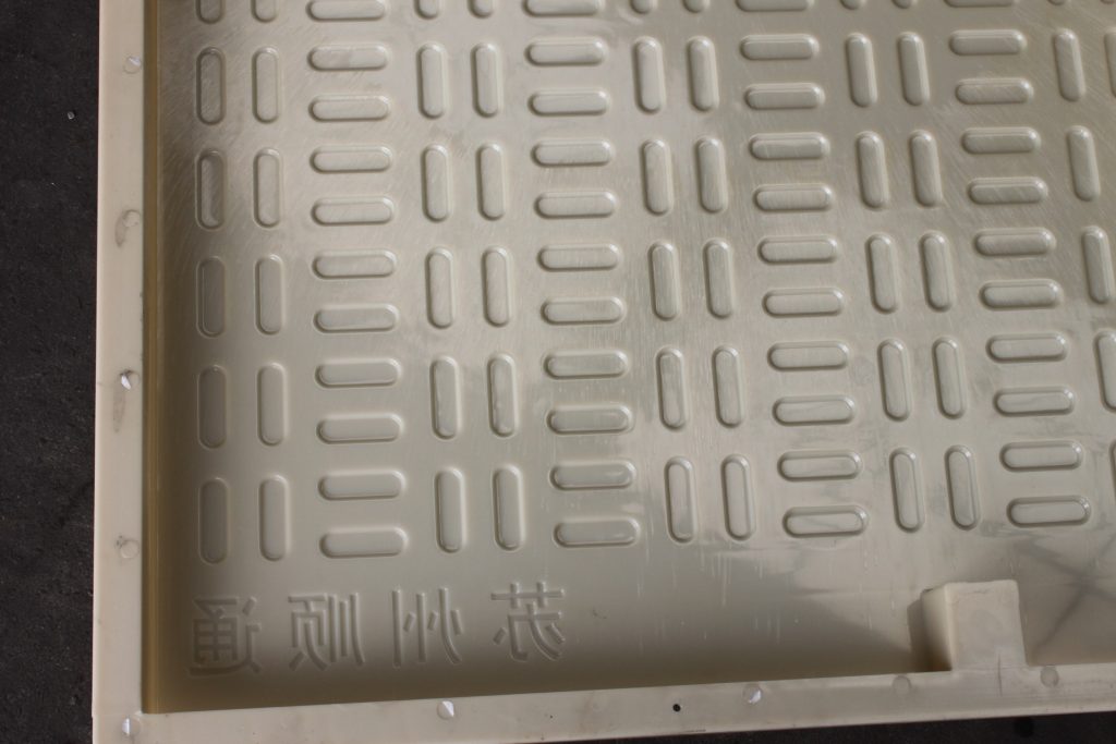 蘇州順通專用地鐵疏散平臺蓋板模具,材質采用高精度ABS塑料,表面主要以橫條加縱條防滑圖案設計,橫面防滑條為5條,縱面防滑條為4條,是專用于蘇州地鐵建設疏散平臺水泥蓋板的預制。