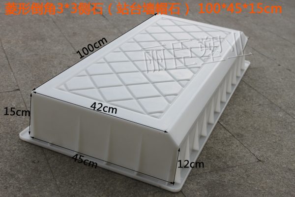 市場上一款極為少見的混凝土路側(cè)石模具,主要用來預(yù)制澆筑高鐵、鐵路站臺墻混凝土路側(cè)石之用。其中長度一邊為倒角設(shè)計(jì),倒角低處尺寸為12厘米,高出尺寸為15厘米,根據(jù)實(shí)際倒角坡度精確規(guī)劃。