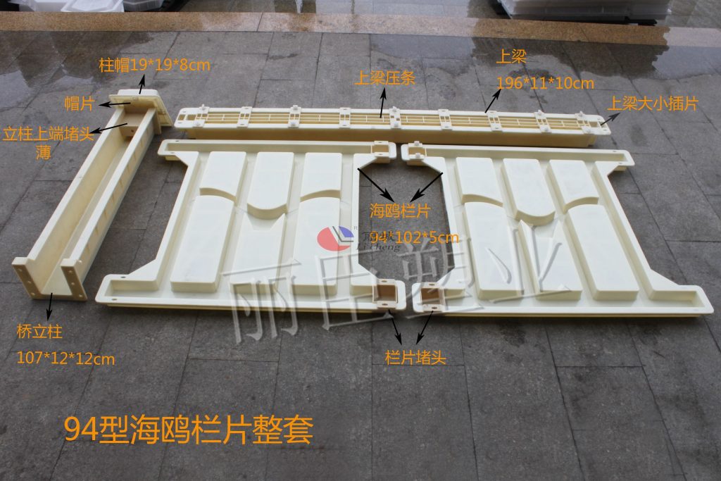 一、欄片花紋不同:那最明顯的來說便是94型護(hù)欄塑料模具在欄片的規(guī)格上進(jìn)行增加,尺寸為94*102*5cm,在圖案上也進(jìn)行略微的加工,采用較為生動(dòng)的海鷗樣式為主要使用圖型。而72型護(hù)欄模具在尺寸上為72*91*5cm為主,圖案以工字型為主。72型整體欄片有AB之分,而94型整體欄片中沒有AB片的區(qū)分,在工程使用中也不用擔(dān)心欄片裝反的情況發(fā)生。