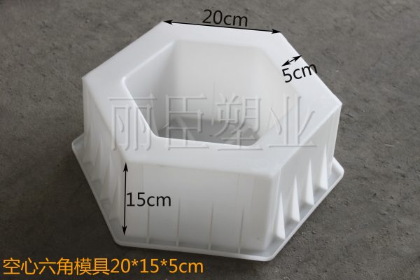 空心六角塑料模具在設(shè)計(jì)上采用PP聚丙烯塑料注塑而成,這款六角護(hù)坡模具的尺寸為20x15x5cm,5cm的壁厚對(duì)于后期澆筑成型水泥制品,在安裝使用上能更為簡(jiǎn)便。