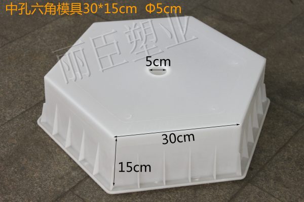 通過(guò)采用PP聚丙烯塑料注塑成型的中孔水泥六角磚模具,在后期澆筑水泥制品過(guò)程中能較為便利的進(jìn)行生產(chǎn),對(duì)于在澆筑過(guò)程中施工方的野蠻敲打下,中孔六角模具依舊能保持原有的特性。