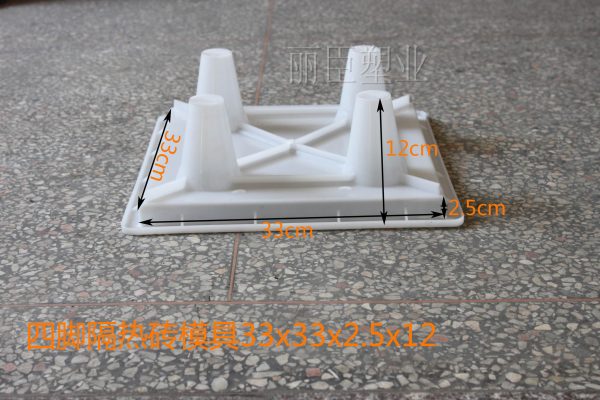 四腳隔熱磚模具澆筑成型的水泥砼制品的使用能有效對于房屋屋面進(jìn)行有效的隔熱,采用隔熱磚來作為屋面的隔熱層比在屋面上采用鋪土來的要效果強(qiáng)烈些。
