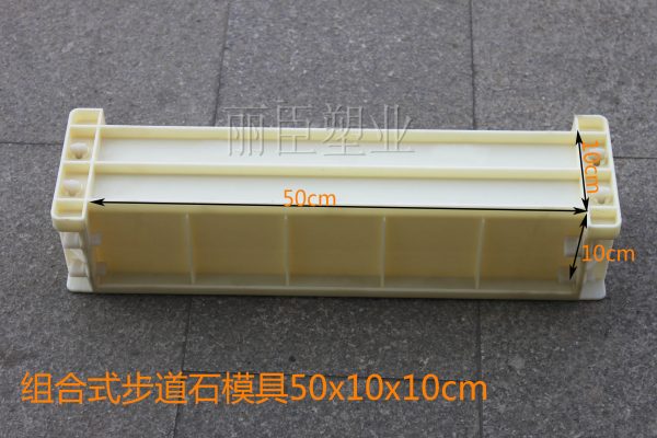 組合式步道石模具在用料上依舊采用ABS材質(zhì)來作為主要生產(chǎn)原料,ABS材質(zhì)澆筑成型的水泥步道石澆筑過程中不易發(fā)生變形,其運(yùn)輸中就算是過度的綁扎也不會(huì)對步道石模具產(chǎn)生影響,因其可以進(jìn)行拆分使用,50x10x10cm與25x10x10cm模具之間其使用的兩邊堵頭都是一致,所以在先前購買25長步道石模具的客戶在后買50長的步道石過程中可以減少購買堵頭的數(shù)量,依舊可以使用25長的步道石堵頭。