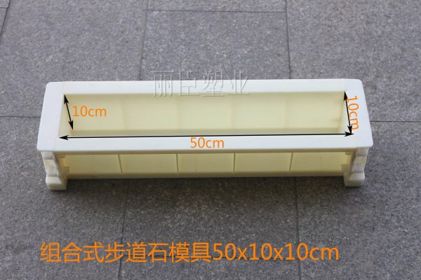 麗臣之前有推出同款組合式步道石模具,其規(guī)格是在25x10x10cm,而現(xiàn)在這款組合式步道石模具其規(guī)格是在50*10*10cm,在長度上大大的進(jìn)行增加了,讓其后面澆筑型的的混凝土步道石水泥制品在使用過程中能更為便利。