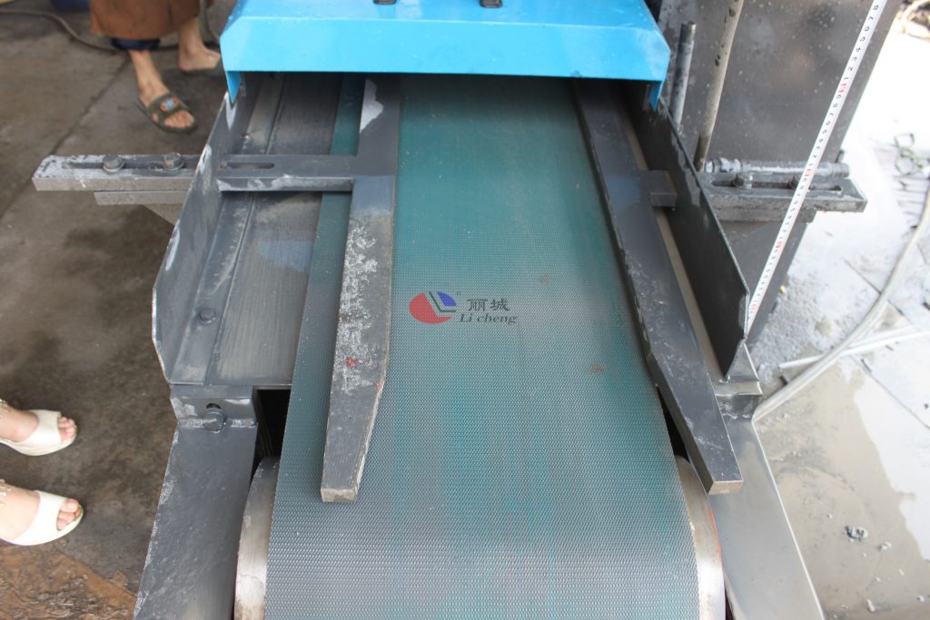 制作這臺多功能成型機的技術(shù)員在對這臺機器出廠前進行了最后一步的調(diào)試,將澆筑成型的水泥磚放置輸送帶上,成型機入口處與出口處都有配置供水系統(tǒng),防止在制作過程中塵土飛揚,能對水泥制品打磨過程中其表面更為整潔統(tǒng)一。經(jīng)過平磨系統(tǒng)對水泥模具澆筑成型的水泥制品進行磨形,后進入第二系統(tǒng)對水泥磚塊制品就進行拉條紋,這款多功能側(cè)石二工位條紋成型機打磨成型的條紋彩磚的外觀以34條紋為主。打磨成型后在有輸送帶將水泥磚運輸出來。其使用過程中為防止施工過程中的安全事故的發(fā)生,通過使用電控箱的方式來對機器進行急??刂啤?br />