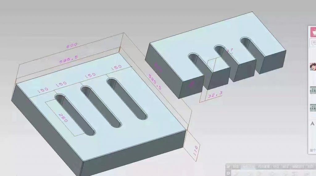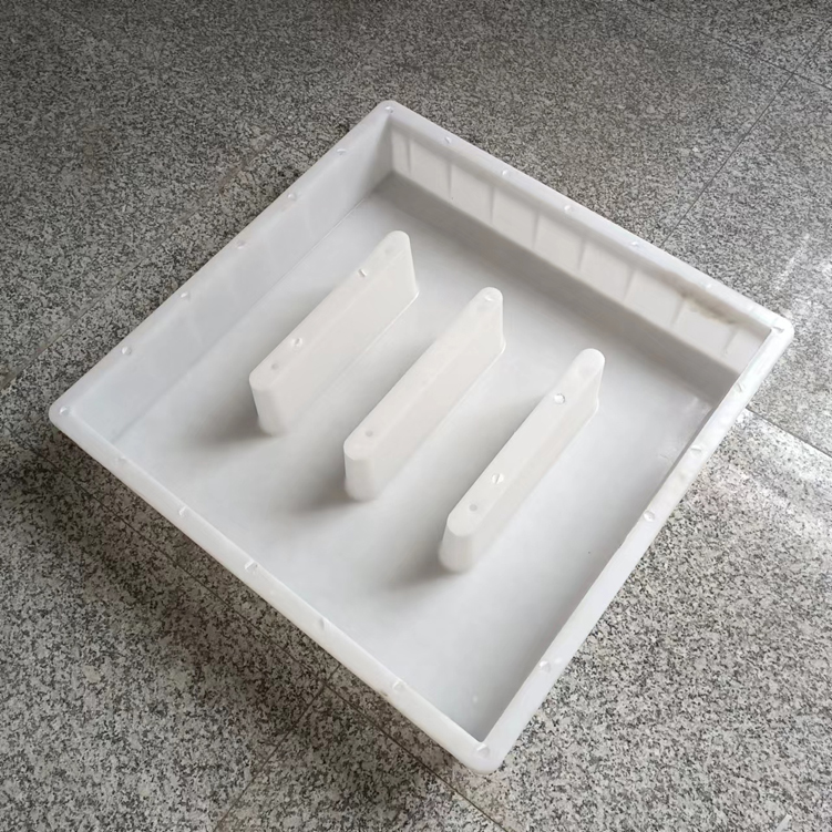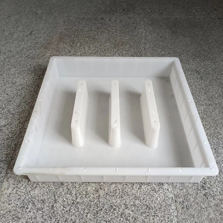 三孔雨水蓖塑料模具,模具采用米白色PP材質(zhì)制成,模具尺寸為60cm*60cm*11cm,模具開始設(shè)計尺寸為60cm*60cm*10cn,因為需要充分達標,所以模具厚度尺寸實際尺寸比設(shè)計尺寸厚1cm,模具采用三孔設(shè)計,具體尺寸如下設(shè)計圖。主要用于道路下水使用,且厚度厚,可以承載較大的壓力。