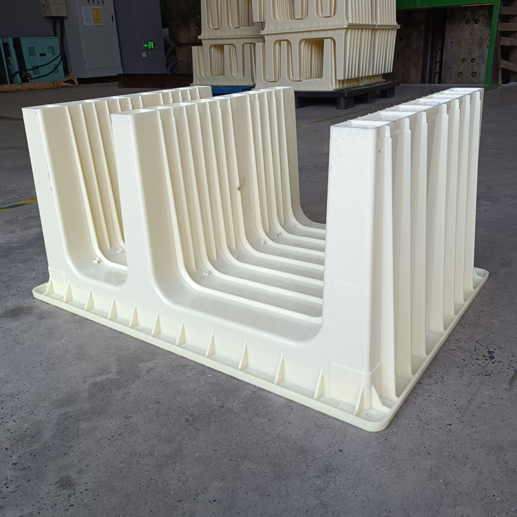新款72型電纜槽,尺寸為72cm*50cm*37.5cm,為舊款改良而成,尺寸實際為中間凹1cm,去掉原始墊片設計,采用一體注塑成型,堅固耐用,可打泄水孔,這款E型槽為高鐵施工案例中最基礎款電纜槽,搭配電纜槽蓋板使用。