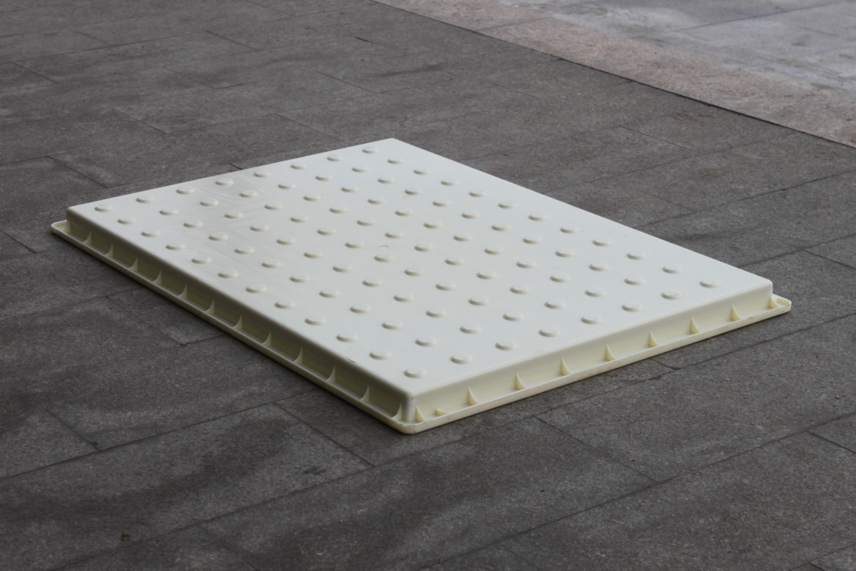 疏散平臺(tái)蓋板模具主要以表面凸起圓點(diǎn)設(shè)計(jì),由于蓋板成品主要使用于地鐵疏散平臺(tái),所以凹凸圓點(diǎn)圖案可以起到防滑功效,避免行人在急忙之中產(chǎn)生滑倒等傷害因素。